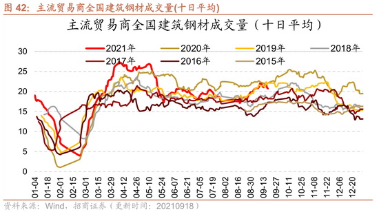 建筑钢材成交量十日均值周环比下行。根据Mysteel Data,9月18日主流贸易商全国建筑钢材成交量为23.06万吨;从过去十日移动均值情况来看,主流贸易商全国建筑钢材成交量十日均值为20.72万吨,周环比下行6.5%。