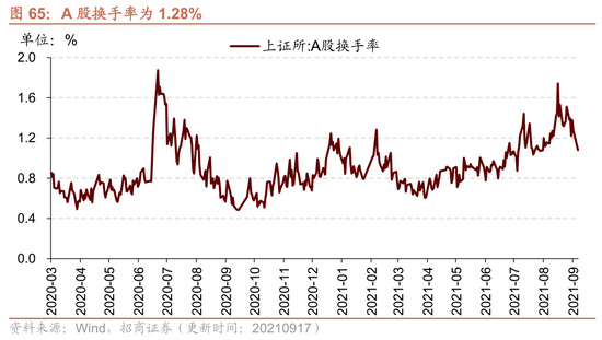 A股换手率和日成交额下行。截至9月17日,上证A股换手率为1.28%,较上周下行0.23个百分比;沪深两市日总成交额下行,两市日成交总额为12994.83亿元人民币,较上周下降12.89%。