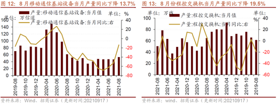 4、8月份移动通信基站产量当月同比降幅收窄,程控交换机当月产量同比转负
