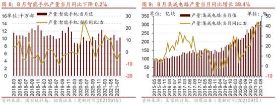 2、8月智能手机产量降幅收窄,集成电路产量维持较高增速