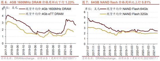 4GB 1600MHz DRAM价格下行,32GB NAND flash价格与上周持平,64GB NAND flash价格周环比上行。截至9月17日,4GB 1600MHz DRAM价格周环比下行1.23%至2.66美元;32GB NAND flash价格和上期保持一致为2.056,64GB NAND flash价格周环比上行0.81%至2.482美元。