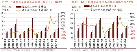 1-8月房屋新开工面积累计值为13.35亿平方米,累计同比减少3.2%,较1-7月份增幅扩大2.3个百分点。1-8月份房屋竣工面积累计值为4.68亿平方米,累计同比增长26.0%,涨幅较前值扩大0.3个百分点。