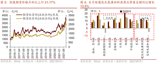 ?【本周关注】近期水泥等消费类建材景气度继续提升。9月中旬以来,广西、江苏、云南、贵州等地限电趋严,市场供应趋紧,煤炭等成本价格上行,导致全国多数企业纷纷上调水泥价格。从8月份社会消费品零售数据来看,地产产业链中仅建筑及装潢材料同比保持较高增速。8月地产竣工继续修复,叠加供给受限,中长期消费类建材景气度有望持续。