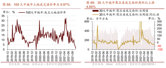 本周土地成交溢价率下行,商品房成交面积上升。截至9月19日,100大中城市土地成交溢价率为0.97%,较上周下行2.41个百分点;30大中城市商品房成交面积当周值为292.62万平方米,较上周上涨4.84%。