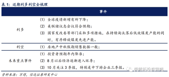 行业配置建议:大宗商品每一轮涨价一般持续2年多,背后原因主要是要等待新产能的建设投放,考虑到周期股的领先性,周期股可能能涨到年底或明年初,建议煤炭、钢铁、石油石化、种业等。金融股从绝对收益的角度已经进入价值区间,年底可关注相对收益的提升,特别是增量资金进来的时候,市场可能会出现类似2014年Q4的金融股暴动,目前逻辑认可度最高的是券商,建议最先关注,银行和地产的机会可能要等恒大事件落地。