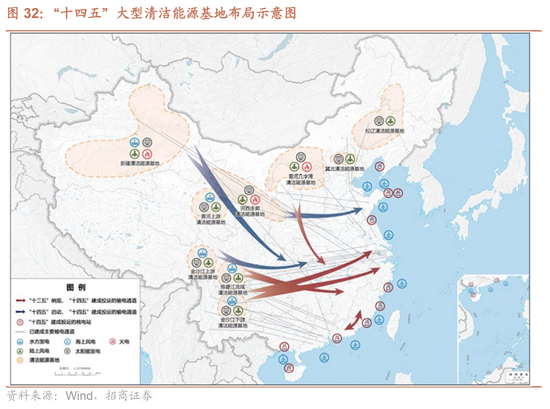 此前,十四五规划第三篇第十一章提出,“加快发展非化石能源,坚持集中式和分布式并举,大力提升风电、光伏发电规模,加快发展东中部分布式能源,有序发展海上风电,加快西南水电基地建设,安全稳妥推动沿海核电建设,建设一批多能互补的清洁能源基地,非化石能源占能源消费总量比重提高到20%左右。”并且在专栏六的第一条就提出要建设大型清洁能源基地,风光大基地则是大型能源基地的组成部分,主要分布在东三省、河北、内蒙古、宁夏、甘肃、青海、新疆以及四川、云南、贵州等地。
