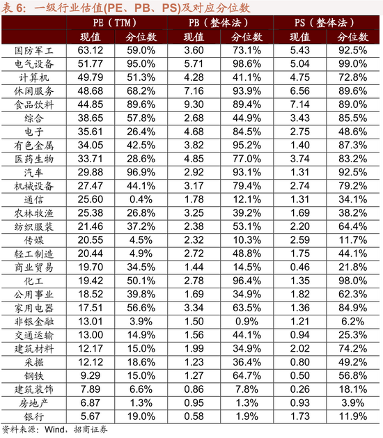在行业估值方面,本周板块估值涨少跌多,其中,汽车、电气设备板块估值上涨较多,涨幅超过1.0X,公共事业、农林牧渔板块下跌较明显,跌幅超过1.0X。其中,汽车板块上涨2.1X至29.9X,处于96.9%历史分位;电气设备板块估值上涨1.8X至51.8X,处于95.0%历史分位;公共事业板块估值下跌2.0X至18.5X,处于39.8%历史分位。截至10月15日收盘,一级行业估值排名前五的行业分别是国防军工、电气设备、计算机、休闲服务、食品饮料。
