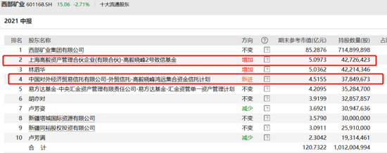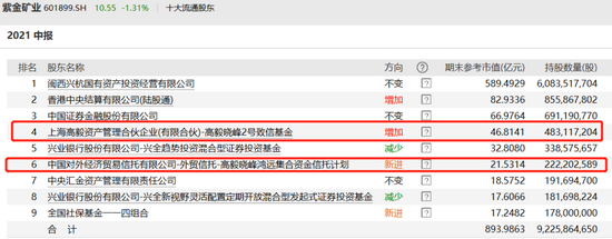 自2019年年底就进入紫金矿业前十大流通股东的高毅晓峰2号致信基金,在经过连续6个季度的加仓之后,于今年三季度范围首次出现了减仓行为。