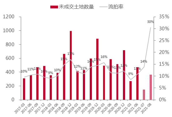 100大中城市未成交土地数量及流拍率