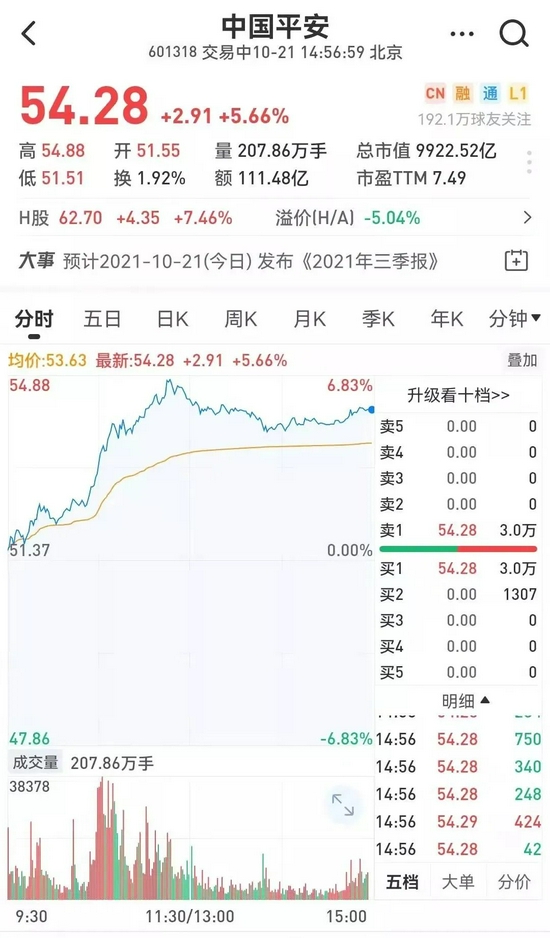 10月21日,恒指跌0.45%,恒生科技指数跌0.82%。恒大系个股下挫,中国恒大跌超12%,恒大物业跌超7%。内险股、内房股、煤炭股走高,中国平安涨超7%,融创中国涨超10%。