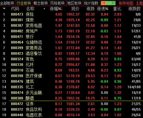 10月21日,沪深股市整体窄幅震荡。周期股与消费股成为盘面结构性机会的两大主线。通达信数据显示,A股56个行业板块指数中,19个板块指数上涨。其中,家用电器、家居用品、酒店餐饮、酿酒、食品饮料等板块指数全天涨幅居前。
