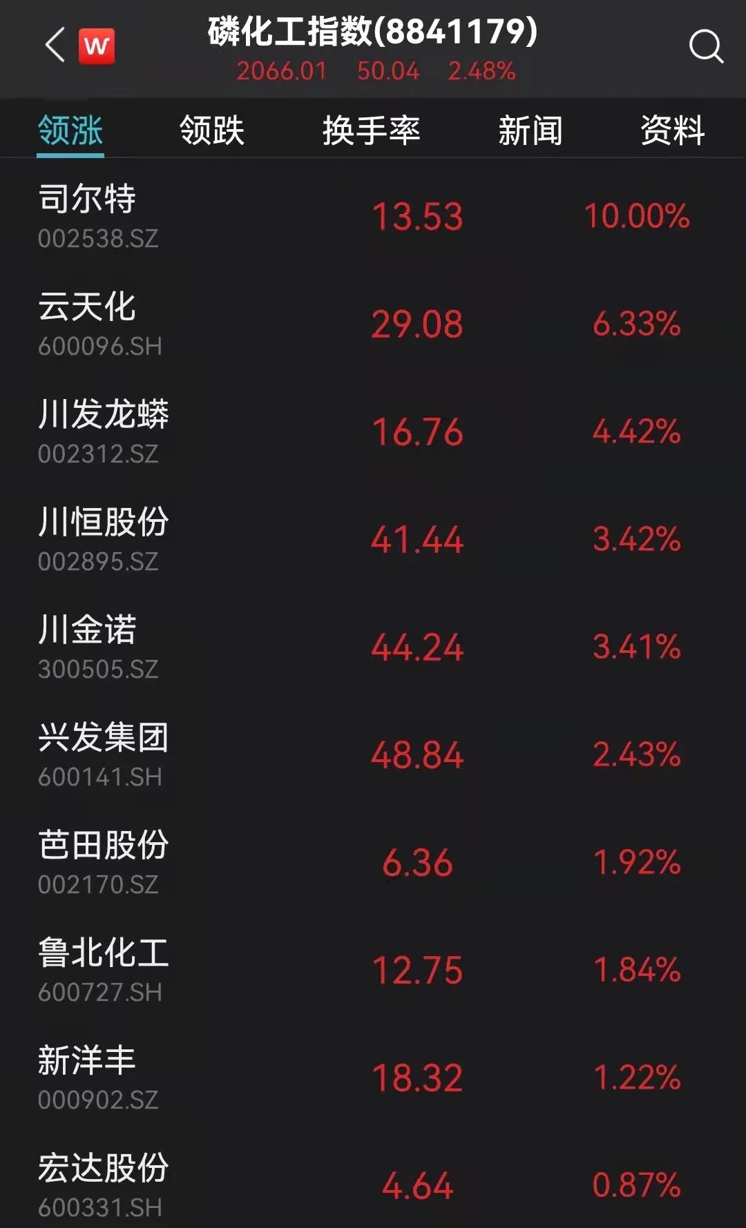 磷化工板块再度大涨