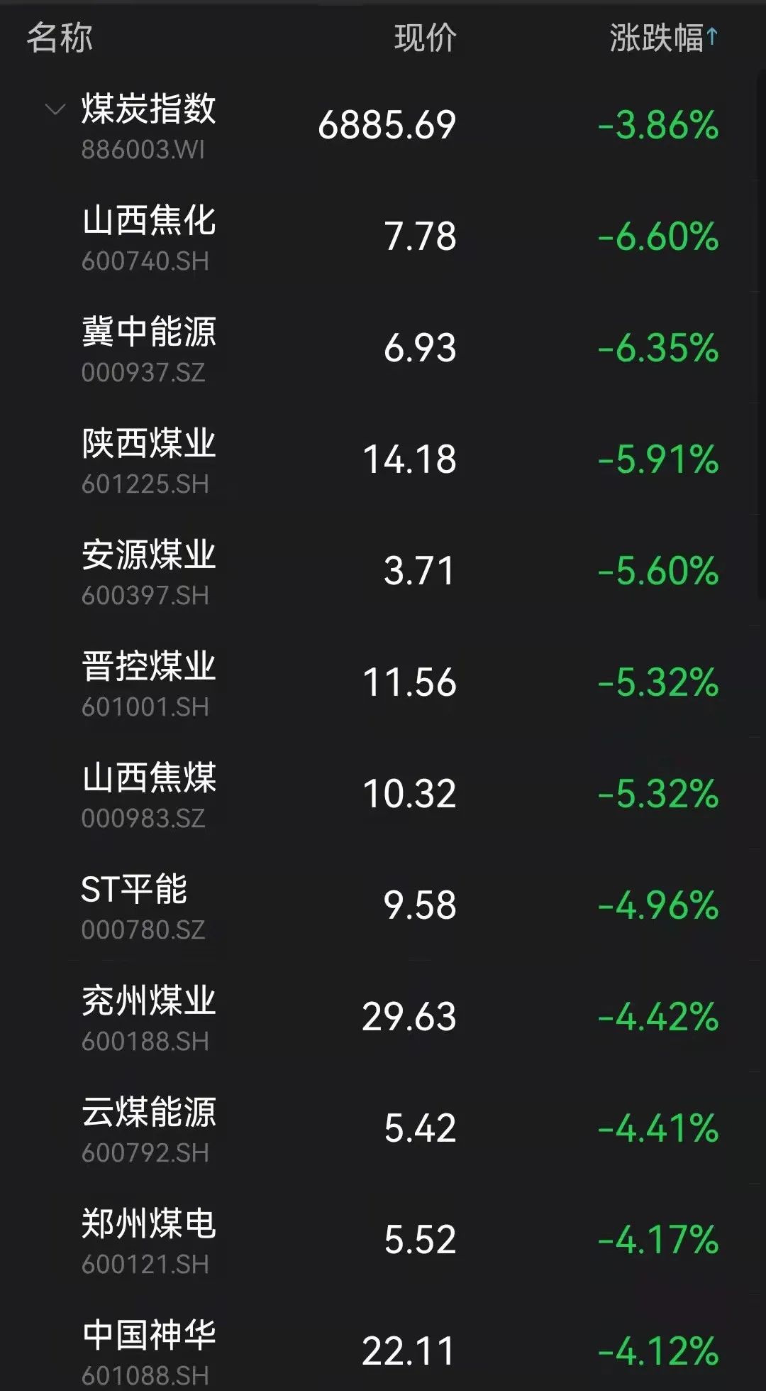 与之形成鲜明对比的是,煤炭板块跌幅居前,山西焦化、冀中能源、陕西煤业等大幅下跌。