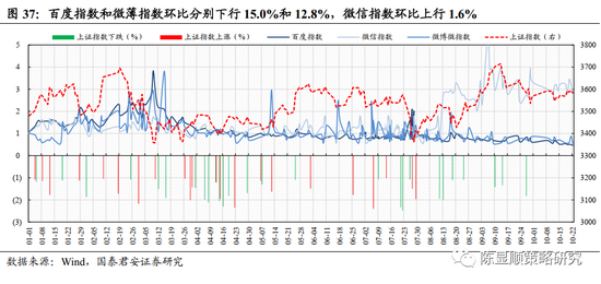 ?2)9月新增开户数环比下行,股市关注度小幅趋降。9月上证新增账户数为275.61万户,较8月319.15万户环比下降13.64%。百度指数和微博微指数环比分别下行15.0%和12.8%,微信指数保持相对稳定。