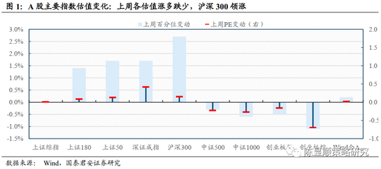 2.1. 板块:估值涨多跌少,沪深300领涨