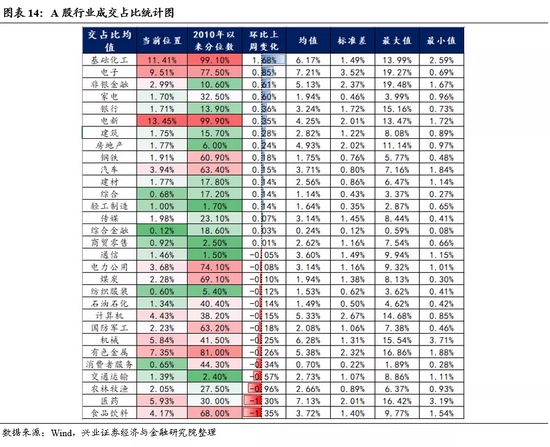 2.2. A股行业交易拥挤度:基础化工、电子热度上行