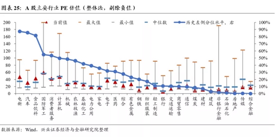 本周PE分位数前三的行业分别为:电新(87.3%),汽车(85.6%),食品饮料(81.6%)