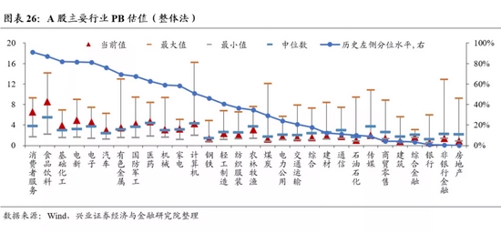 本周PB分位数前三的行业分别为:消费者服务(91.1%),食品饮料(87.2%),基础化工(81.9%)