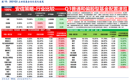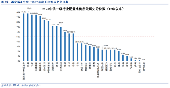 从行业角度来看,结合近年来各行业仓位中枢水平趋势与历史分位水平来看,Q3电力设备及新能源、钢铁、电子、基础化工、有色金属仓位所处历史分位水平高于90%。同时,商贸零售、非银行金融、家电仓位则处于极低的历史分位水平。