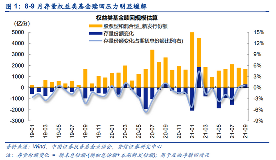 从微观流动性角度来看,居民资产配置的大逻辑支持仍然不变。一方面,房产税改革试点近日官宣落地,随着房产税试点加速落地和近期部分区域房价的回落,“房住不炒”已经深入人心;另一方面资管新规过渡期仅剩最后两个月,大量银行理财需求面临转型。权益类投资有望取代房地产和银行理财成为居民资产配置的重要品种。我们跟踪的公募基金存量变化情况显示,8月存量权益类基金赎回压力明显缓解。对于A股来说,资产荒下的结构牛中期趋势正得到进一步强化。