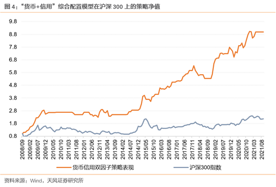 我们选取Shibor3M作为货币因子的源数据,根据下图可以看到Shibor3M在2021年10月继续呈现向下趋势,根据“货币+信用”综合配置模型的定义,货币状态位于“低位平稳”状态,因此最新一期的货币因子信号为“放松”。