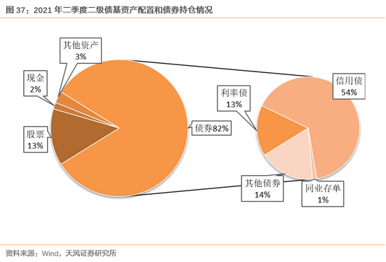 具体到债券配置,我们认为后续债基中各类资产占比预计保持平稳,信用债和利率债占比分别为54%、13%左右,其他资产(包括同业存单、现金产品、固收+等)占比约为33%。