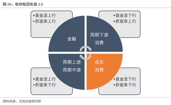 1、现金流下行,折现率下行:建议配置成长、消费板块
