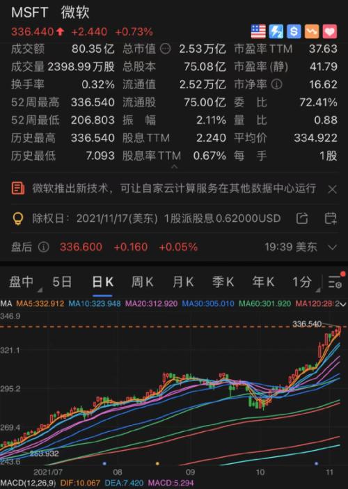 特斯拉、微软也都创下新高,谷歌创盘中新高。