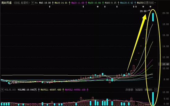 值得注意的是,南岭民爆是10月下旬至昨日A股最最最牛气冲天的超级“妖股”,自10月19日收出长阳线涨停板以来,复牌之后又连续7个交易日封死一字板,创出了近6年的新高。这8个连续涨停板,累计最高涨幅达到114%,也就是说股价8天翻倍!而这期间,各大指数跌幅比较明显,所以更显出“妖气”来。