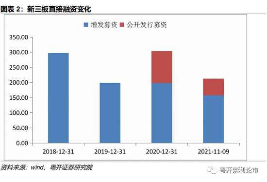 定增融资预案数量明显增加。自北交所设立消息公布以来,新三板定增市场热度明显提升,9月和10月公布定增预案的企业数量分别为54家和99家,11月仅前9天公布定增预案的企业数量就达到72家,均创下近几年以来新高。预计随着企业定增预案逐步实施,以及精选层发行提速,2021年新三板直接融资额有望快速增长。