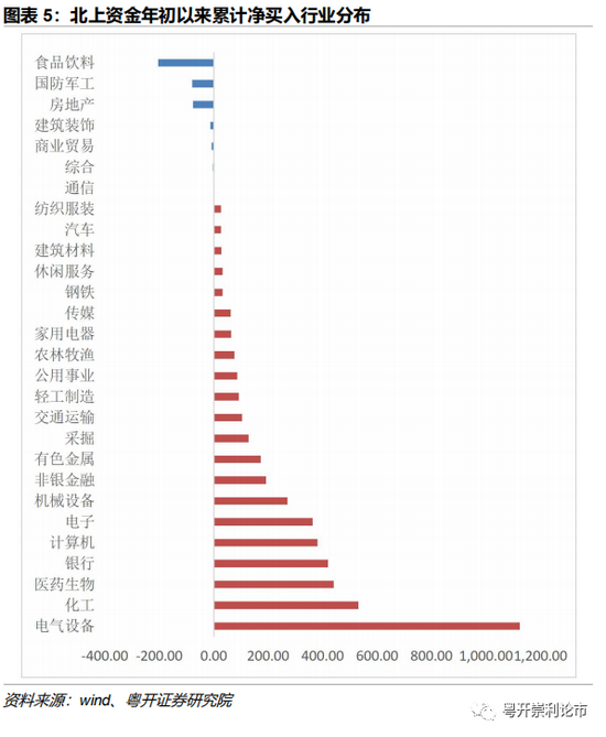 同样,北上资金今年以来也是持续看多电子设备和化工等高景气顺周期板块,其中净买入电子设备已超1100亿元。