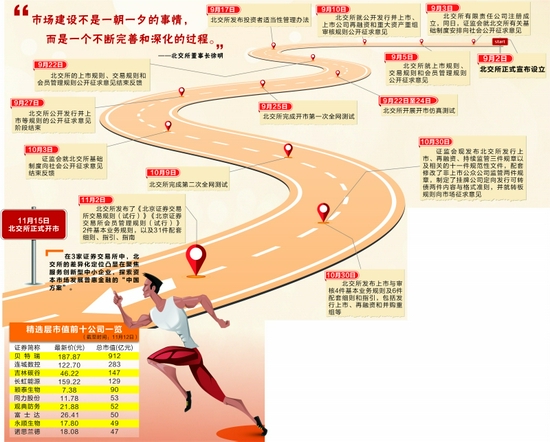 服贸会上的一声宣告,开启了资本市场服务创新型中小企业的新阶段。过去的74天,北交所拔地建高楼,9月3日北交所有限责任公司注册成立,同日,证监会就北交所有关基础制度安排向社会公开征求意见;9月5日,北交所就制度规则征求意见;9月22日开始,全网测试拉开序幕;10月30日,各项基本规则依次落地……