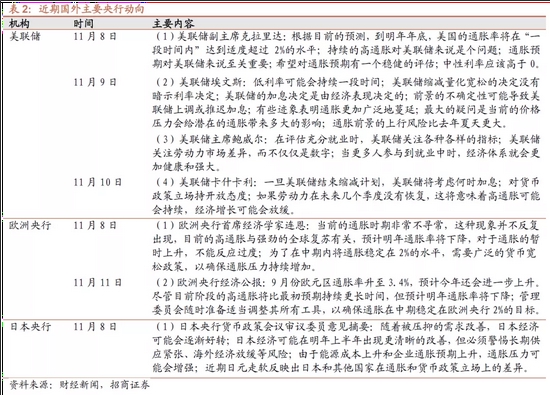 上周美联储多位官员发表讲话,美联储主席鲍威尔表示在评估充分就业时,美联储关注各种各样的指标;美联储关注劳动力市场差异,而不仅仅是数字;当更多人参与到就业中时,经济体系就会更加健康和强大。美联储副主席克拉里达表示根据目前的预测,到明年年底,美国的通胀率将在“一段时间内”达到适度超过2%的水平;持续的高通胀对美联储来说是个问题;通胀预期对美联储来说至关重要;希望对通胀预期有一个稳健的评估;中性利率应该高于0。埃文斯认为低利率可能会持续一段时间;美联储缩减量化宽松的决定没有暗示利率决定;美联储的加息决定是由经济表现决定的;前景的不确定性可能导致美联储上调或推迟加息;有些迹象表明通胀更加广泛地蔓延;最大的疑问是当前的价格压力会给潜在的通胀带来多大的影响;通胀前景的上行风险比去年夏天更大。欧洲央行首席经济学家连恩发表讲话,当前的通胀时期非常不寻常,这种现象并不反复出现,目前的高通胀与强劲的全球复苏有关,预计明年通胀率将下降,对于通胀的暂时上升,不能反应过度;为了在中期内将通胀稳定在2%的水平,需要广泛的货币宽松政策,以确保通胀压力持续增加。