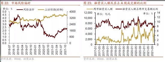 11月8日-11月12日,当周融资买入额为4012.4亿元;截止11月12日,占A股成交额比例为7.8%,较前期上升,投资者交易活跃度增强,股权风险溢价下降。