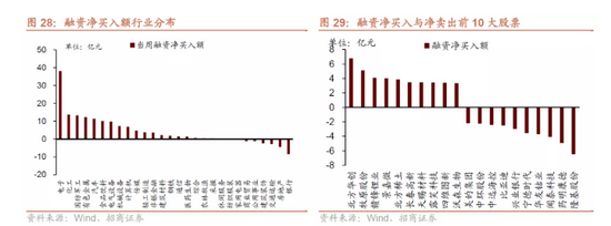 11月8日-11月12日,融资资金净流入107.2亿元。具体来看,本周融资资金买入电子(+38.1亿元)、化工(+13.7亿元)、国防军工(+13.3亿元)等行业,净卖出银行(-8.5亿元)、房地产(-4.5亿元)、交通运输(-2.8亿元)等行业。个股方面,融资净买入规模较高的为北方华创(+6.8亿元)、牧原股份(+5.1亿元)、赣锋锂业(+4.1亿元)等;融资净卖出规模较高的包括隆基股份(-6.5亿元)、药明康德(-4.9亿元)、闻泰科技(-4.1亿元)等。