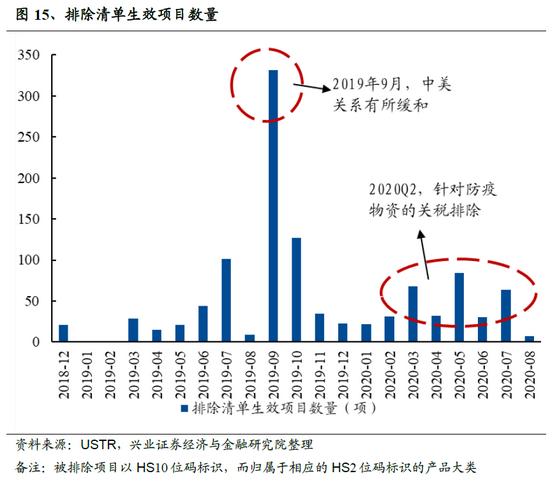 在加征关税的同时,美国政府也分33批次对四次加征关税清单中的部分商品进行了排除。从2018年12月到2020年8月,美国贸易代表办公室(USTR)网站上共公布了33批排除清单。而在2020年商品一旦进入关税排除清单,则可以得到一年到两年不等的关税豁免,且关税豁免具有追溯力,即被豁免的商品可追回加征关税实施后全部加征部分的关税。