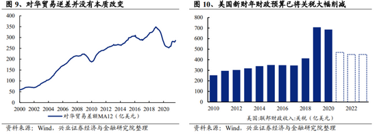 3、拜登政府相比于特朗普政府对待关税措施的态度相对消极。拜登政府在竞选时即表明反对通过提高进口关税减少对华贸易逆差,认为不能达到缩小对华贸易逆差和吸引制造业回流的目的。而根据近两年对华加征关税的实际效果看,也并未对贸易逆差造成本质改变,今年以来对华贸易逆差已重新走阔。此外,根据今年5月拜登政府公布的新财年预算案,关税收入已由近两年的近700亿美元削减至470亿美元,基本降低至2018年贸易摩擦开始前水平,反映出拜登政府处理对外经贸关系的重心将不在加征关税。近期美国政府已有所行动,先取消对奥地利、法国、意大利、西班牙和英国加征的惩罚性关税,又与欧盟达成协议取消对钢铝加征的部分关税,美国财政部长耶伦也表现出对降低关税的积极态度。