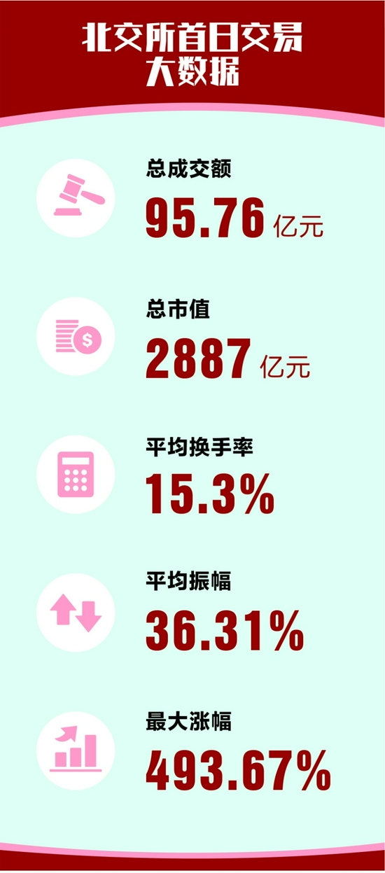 11月15日,北京证券交易所揭牌暨开市仪式在京举行。北京市委书记蔡奇,中国证监会主席易会满出席仪式,共同为北京证券交易所揭牌并鸣钟开市。易会满表示,证监会将坚持“建制度、不干预、零容忍”,持续深化新三板改革,努力办好北京证券交易所,打造服务创新型中小企业主阵地。