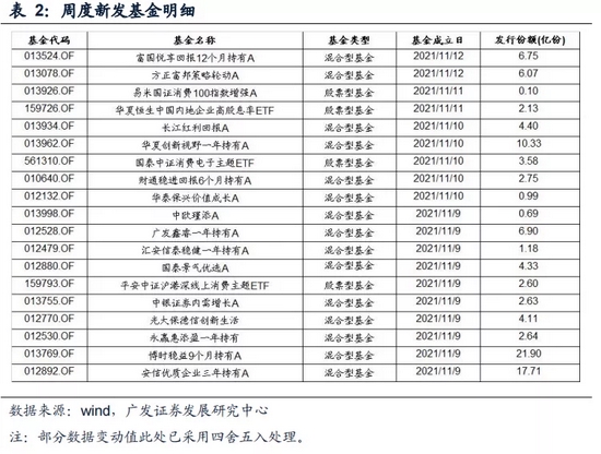 (3)新发基金(股票型+混合型): 上周新发基金规模为156亿元,前一周新发基金规模为381亿元,新发基金规模下降。