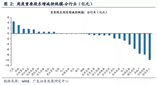 (2)重要股东增减持(A股整体): 上周重要股东减持115亿元,前一周净减持约85亿元。上周减持规模前五的行业为国防军工、交通运输、房地产、建筑材料、机械设备。