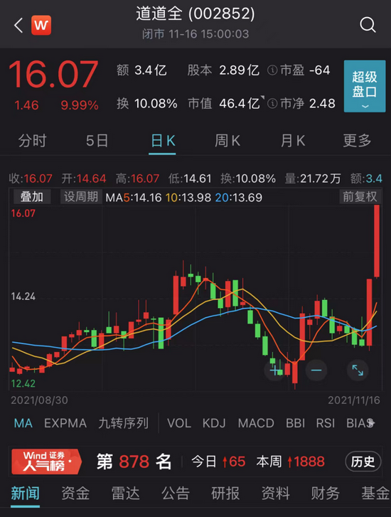 财信证券表示,考虑到道道全的品牌势能持续向上、未来成长空间广阔、发展路径清晰,给予2022年15-20倍PE,对应股价合理区间为13.6-18.2元。