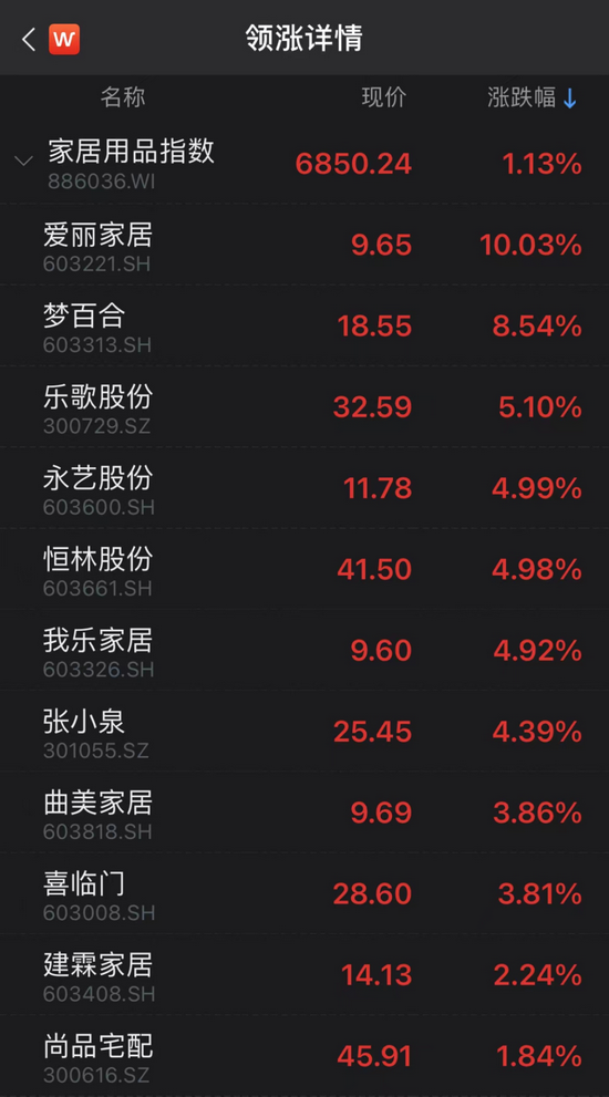 在今日的消费股行情中,地产后周期产业链的家居、家电板块走势引人关注。家居板块中,爱丽家居涨停,梦百合涨超8%。