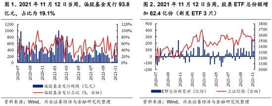 2021年11月12日当周,股票ETF总份额为5934.5亿份,较前周增加82.4亿份,本周新发ETF3只,发行份额达8.31亿份。