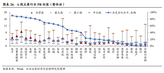 本周PB分位数后三的行业分别为:非银行金融(0%),银行(0.1%),房地产(0.5%)