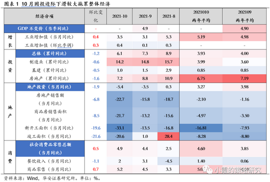 增长角度,10月经济延续放缓,消费表现略超市场预期。在10月房地产销售继续放缓、基建并未显著上行支撑投资端的背景下,尽管消费、出口表现相对亮眼,但经测算10月整体实际经济增速继续放缓,总体符合我们此前月报中“10月经济下行将延续”的判断。后续来看,受11月初全国疫情再次多点爆发影响,消费、基建近期大幅修复难度较大,同时叠加房地产投资下行趋势短期难以扭转,净出口对于经济拉动远小于投资、消费端,因此继续维持“11月经济下行压力依然较大”的观点。