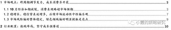 春季躁动前移,来年抢跑提前,布局上继续坚守高景气的强赛道板块。11月第三周,市场仍然体现轮动加速的特征,整周来看,食品饮料为代表的消费领涨,同时以钢铁、采掘、有色为代表的周期板块迎来小幅补涨。但我们认为,当前四季度布局的节点,更多体现的是春季躁动出现前移的特征,短期轮动并不影响继续积极配置成长强赛道。在明年盈利增速确定性下移,政策大幅度宽松概率有限,叠加下半年美联储收紧流动性,因此更多的机会倾向于前置,首先需要继续重点关注新能源和科技的成长赛道。同时,流动性层面,央行11月15日续作1万亿MLF,虽然带来四季度降准概率的下降,但考虑到明年一季度将是经济增长压力最大的阶段,节奏上预计将会相对宽松,流动性层面相对宽松将予以估值上的支撑。因此,当前配置将继续向成长强赛道偏移,一是聚焦绿电概念下的光伏、风电、储能,以及新能源车产业链;二是开始关注科技半导体板块;消费方面,继续关注受益于缺芯缓解的汽车;同时防御方面继续配置低估值的银行。