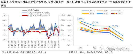 十一假期叠加“双11”预付款,10月消费有所回暖。10月社会消费品零售总额约4万亿元,同比增长4.9%,增速较上月略微扩张0.5个百分点。两年平均增速为4.6%,较上月3.9%提升0.7个百分点。社零总体的走势符合我们10月初月报中“10月消费将有所回暖”的判断。按消费类型来看,餐饮收入同比增长2%,较上月下滑1.1个百分点,与10月底全国多地疫情再次爆发有关,居民线下消费受到较大抑制;商品零售端收入同比增长5.2%,较上月增长0.7个百分点。从具体商品来看,受iphone13发布、“双11”预付款提前至10月20日以及国际原油价格高位上行影响,通信类(边际上涨12%)、化妆品类(3.3%)、日用品类(3%)、石油类(12%)产品边际增长明显支撑本月消费,而金银珠宝类、文化办公等产品增速边际下行较大。后续短期消费复苏具备较大不确定性,需密切观察疫情进展。一方面,当前消费复苏掣肘在逐步消退。三季度消费“K型分化”出现收敛,居民储蓄率逐步回归正常化,因此在Delta疫情9月下旬得到短暂控制后,十一假期消费数据反弹明显,一定程度超出市场预期,预示居民消费已经具备了全面复苏的动能。但另一方面,10月底全国多地再次爆发疫情,各地方均加强了疫情防控,或将再次压制居民出行、消费意愿。因此综合来看,在消费具备复苏条件与疫情再次压制消费意愿两股力量相互“掰腕子”的情况下,后续短期消费复苏仍具备较大不确定性。