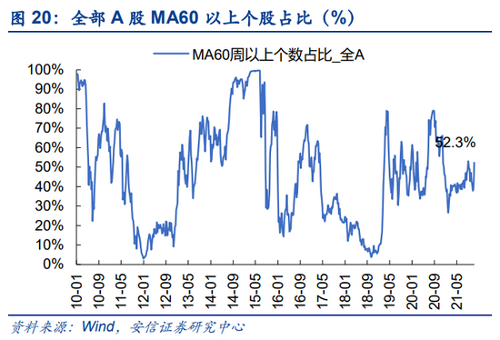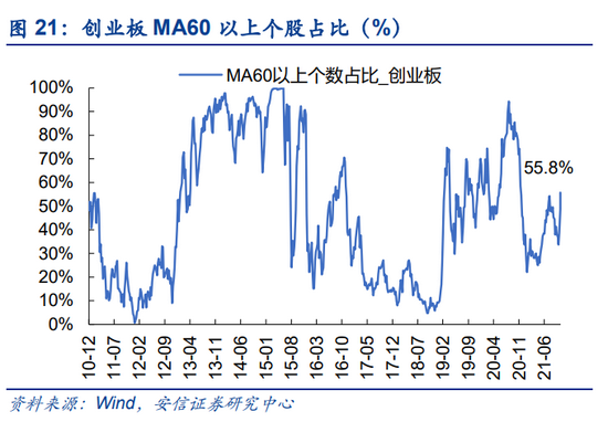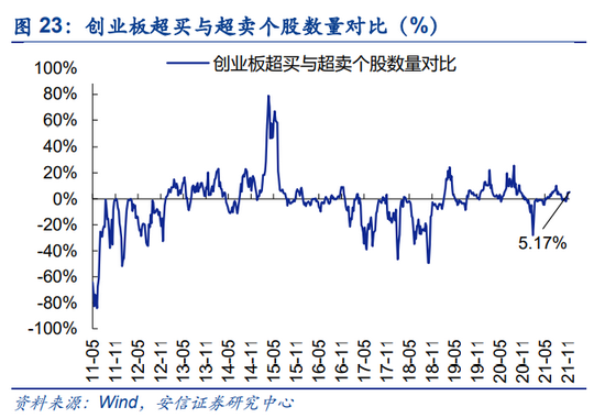本周市场维持震荡,中小创表现较优。当前市场强势个股数量占比50.9%,近一周回升 1.4个百点;超买个股与超卖个股之差占比5.0%,近一周回升0.6个百分点。创业板来看,强势个股数量占比55.8%,近一周回升2.3个百分点;超买个股与超卖个股之差占比5.2%,近一周回升0.2个百分点。