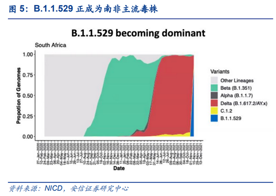 最后,如果新型毒株导致的疫情迅速扩散,且其免疫逃逸和致病性超出预期,则可能引发新的出行限制,极大影响当前全球经济复苏进程。事实上,目前已有多个国家开始针对南非实施“禁飞令”等限制措施:欧洲方面,11月25日英国卫生大臣贾维德宣布,从26日12时起,英国将南非、纳米比亚、津巴布韦、博茨瓦纳、莱索托和斯威士兰这六个非洲地区列入红色名单,并禁止过去10天去过的这些地区的非英国公民入境,同时暂停这些国家入境英国的航班。意大利、德国、法国、荷兰和奥地利同样进行了航空管制。欧盟委员会主席德莱恩在推特上表示,出于对这种变体的担忧,欧盟委员会将提议限制从南部非洲飞往欧盟的航空旅行。以色列甚至在27日宣布禁止外国人入境,成为首个为防变异毒株封锁国境国家。亚洲方面,新加坡政府于26日宣布,于27日晚间11:59之后,禁止过去14天滞留过南非、纳米比亚、津巴布韦、博茨瓦纳、莱索托和斯威士兰、莫桑比克的旅客都将禁止入境新加坡或在新加坡机场转机。马来西亚26日起禁止民众前往以上七国,并针对过去14天自这些国家入境人士延长集中隔离期限。印度则要求各邦筛查来自南非及其他‘有风险’国家的国际旅客,为他们检测。根据香港政府新闻网(news.gov.hk),当前已将南非、博茨瓦纳、斯威士兰、莱索托、马拉维、莫桑比克、纳米比亚和津巴布韦共八个非洲南部地区列为高风险A组指明地区,11月27日凌晨零时起,禁止于21天内曾逗留当地的非香港居民入境。