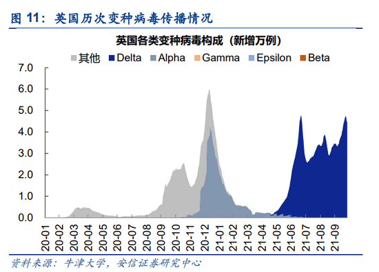 首先,我们应该认识到,目前疫苗并未让疫情得到有效控制,这与今年年初时市场普遍预期非常不同。我们注意到,去年10月以来,全球新增确诊人数基本保持2个月上升、2个月下降的4月周期,不同的变异毒株在全球不同地区反复轮流爆发。例如去年冬季美国疫情、今年5月的印度疫情、今年8月的美国和东南亚疫情、当前的欧洲疫情等。一些疫苗接种率较高的地区在开放后也面临疫情的挑战,例如当前的欧洲。因此,现有的防疫方式和基于此的市场定价可能面临调整。